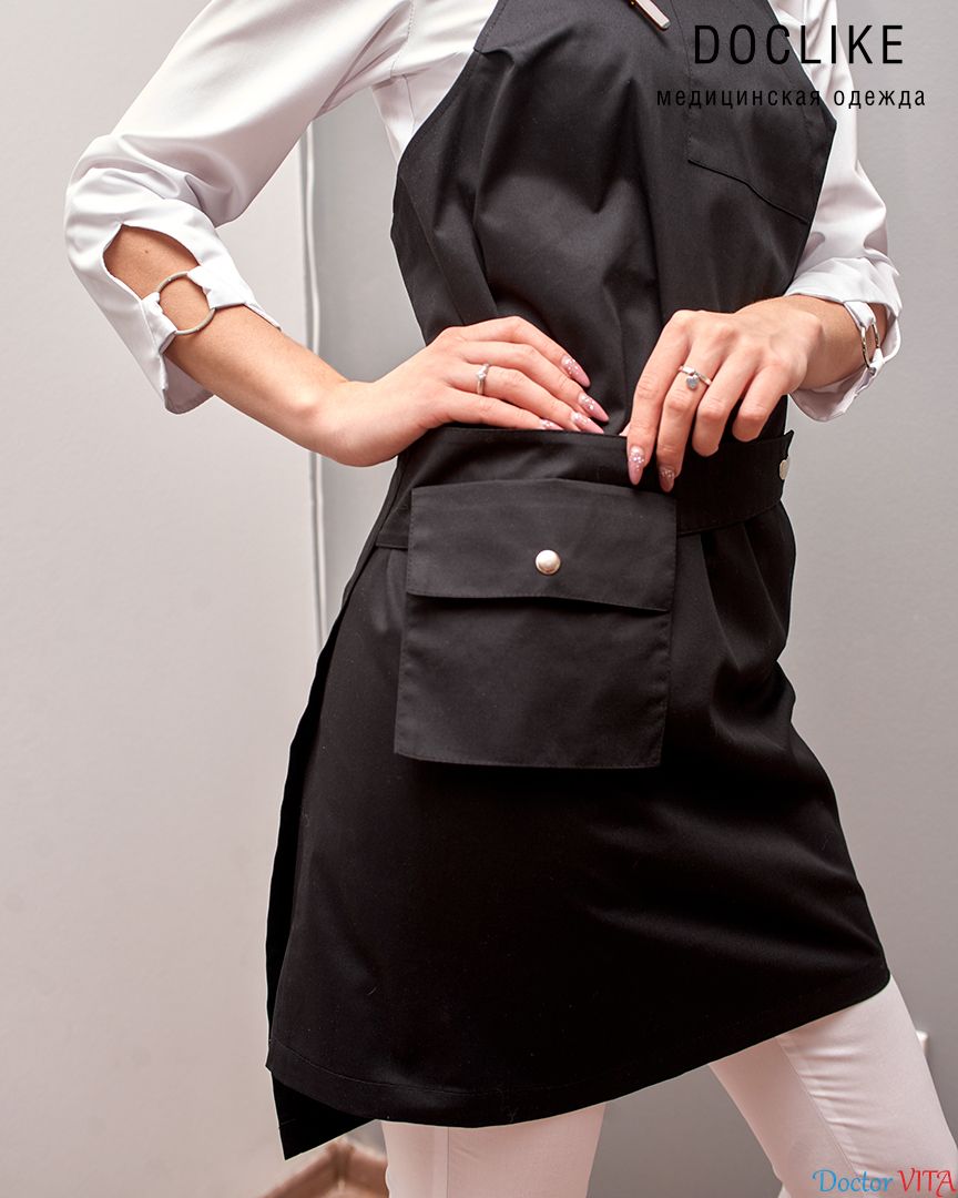Фартук DOCLIKE модель DL015 black. Невероятно женственная и лаконичная модель из легкой и приятной мягкой ткани. Фартук на запах, с карманами и удобной за счет кнопок регулировкой на поясе.