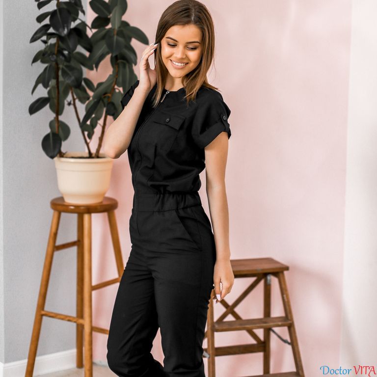 Пара карманов на груди, молния на верхней части комбинезона, удобная резинка на талии — восхищенные взгляды будут останавливаться на каждой детали вашего образа. Легкий комбинезон в стиле Кэжуал (англ. Casual) — повседневный стиль одежды с акцентом на удобство и практичность.