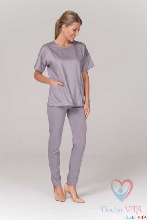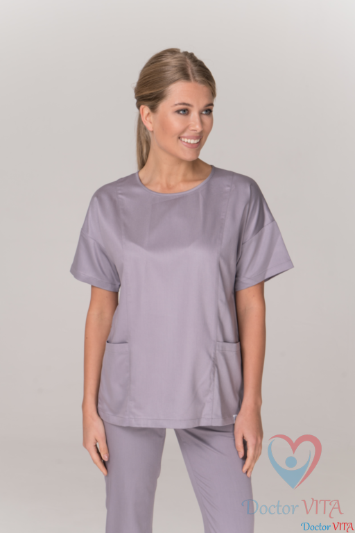 Блуза медицинская Dr.Super модель "Sky" серого цвета производится из европейской ткани и идеально сидит по фигуре. Элегантная приталенная модель. Невероятно женственный крой из легкой и приятной мягкой ткани.