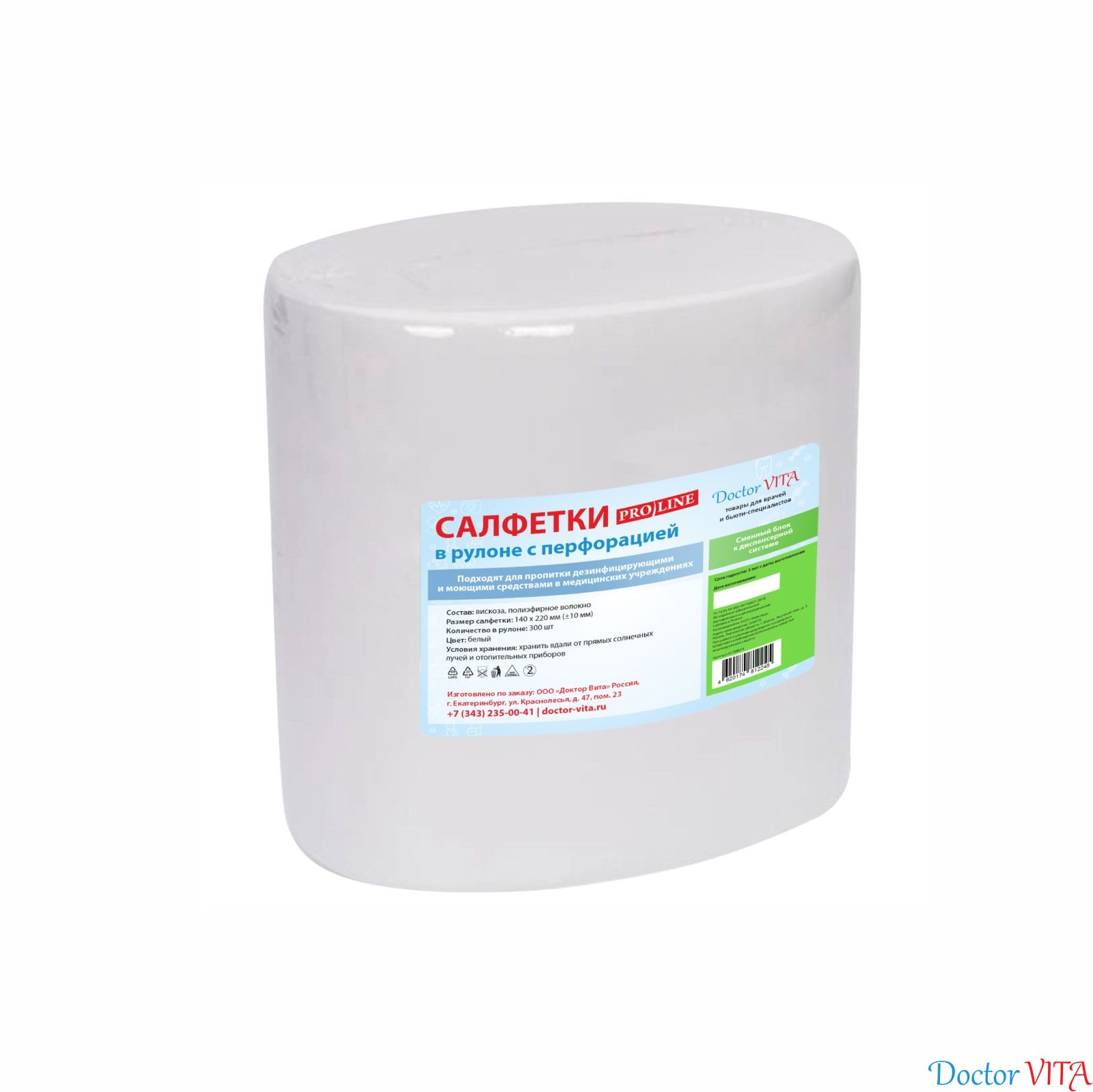 Салфетки PRO Line №300 - сменный блок в рулоне с перфорацией без втулки белого цвета. Используются совместно с диспенсорной системой Doctor VITA для эффективной обработки поверхностей в ЛПУ.