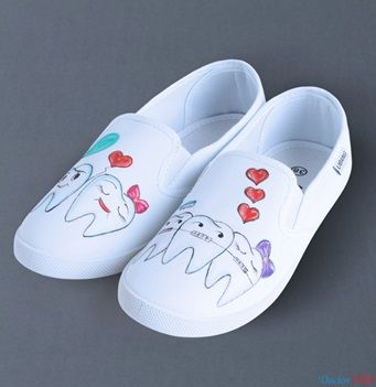 Слипоны — легкая обувь без шнуровки. Состоят из верхней части — парусины и резиновой подошвы. Расписывается вручную дизайнерами. Врачи большую часть времени находятся на ногах, а порой необходимо стоять на одном месте несколько часов. Важно, чтобы обувь была удобна, проста в уходе.