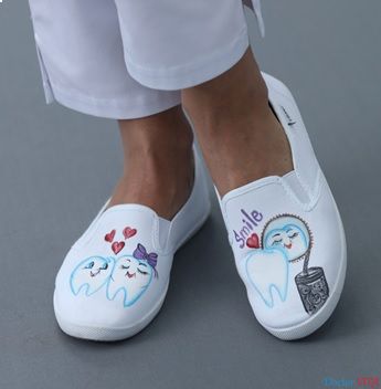 Слипоны — легкая обувь без шнуровки. Состоят из верхней части — парусины и резиновой подошвы. Расписывается вручную дизайнерами. Врачи большую часть времени находятся на ногах, а порой необходимо стоять на одном месте несколько часов. Важно, чтобы обувь была удобна, проста в уходе.